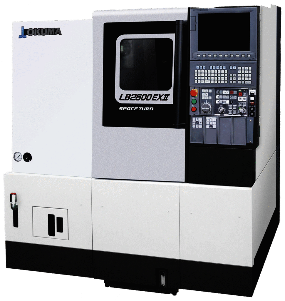The Okuma LB2500 EX-II Space Turn is a high-precision, rigid CNC lathe designed for heavy cutting and high-speed turning with exceptional accuracy. Built on Okuma’s Thermo-Friendly Concept, it minimizes thermal growth for consistent dimensional stability.
